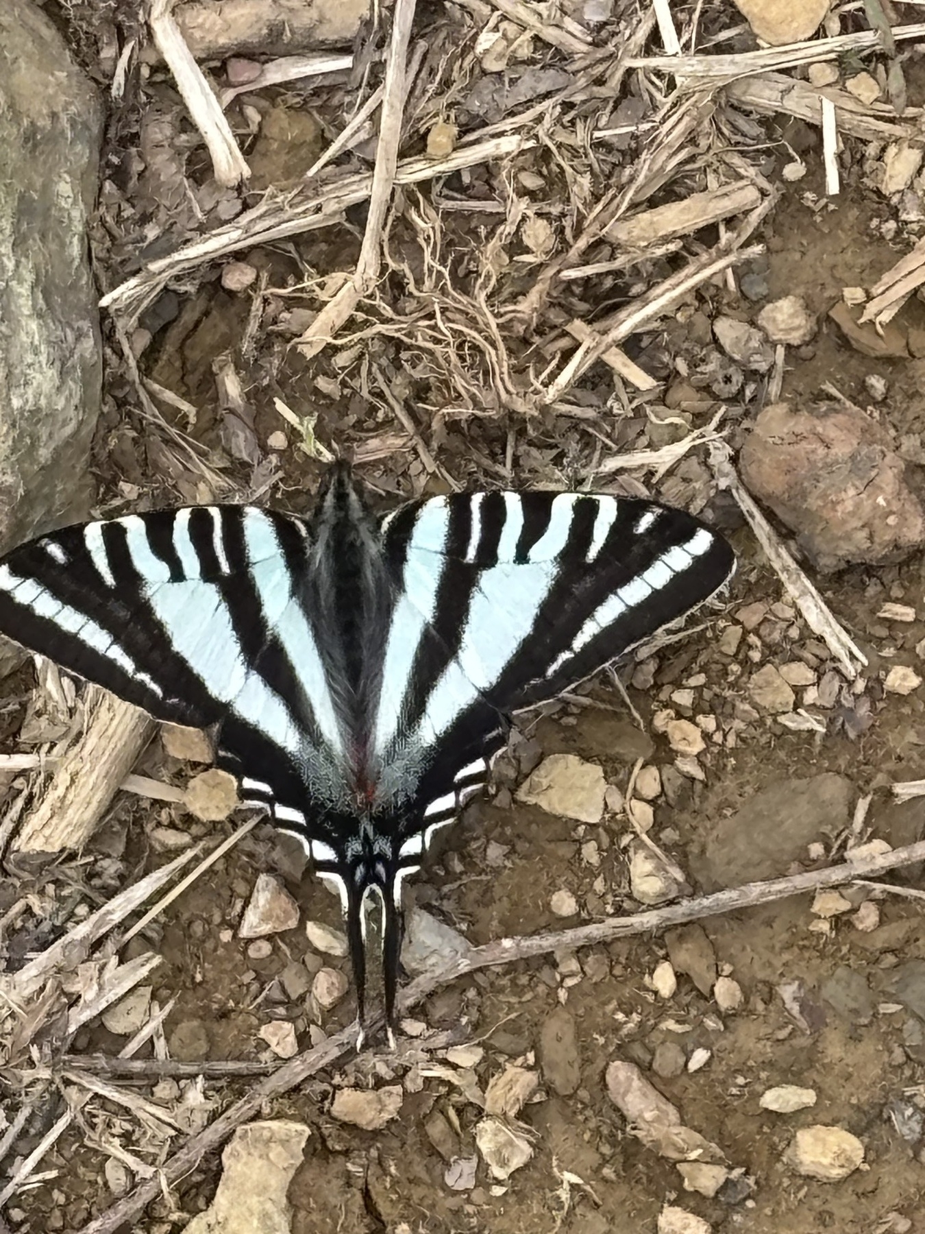 Spring, in black and white. Zebra swallowtail and chickadee.